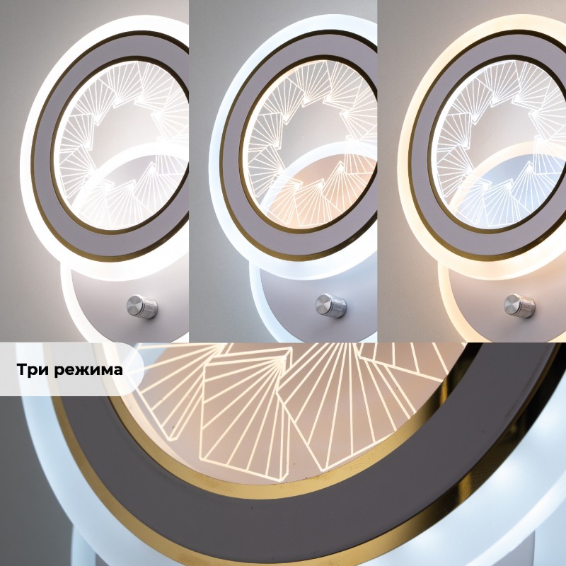 Светильник настенный SAPFIR SPF-4851 БЕЛЫЙ+ЗОЛОТО ` 3 РЕЖИМА с выкл NEURO SPF24-12(1/12)