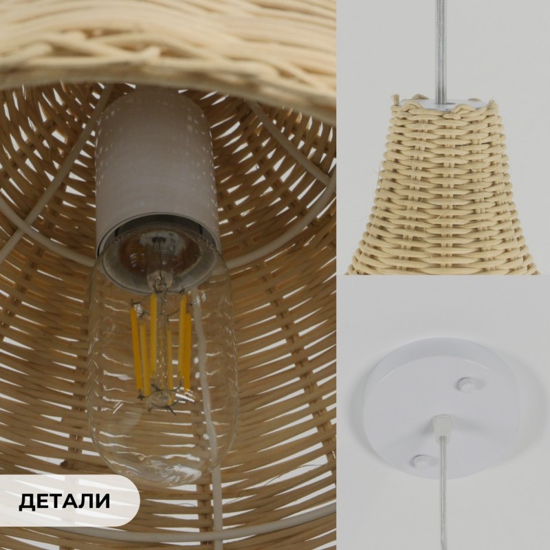 Купить Светильник подвесной SPFD-47324 БЕЛЫЙ РОТАНГ ` D350*350/H1000/1/E27/30W прозрачный провод, без ламп в Казани