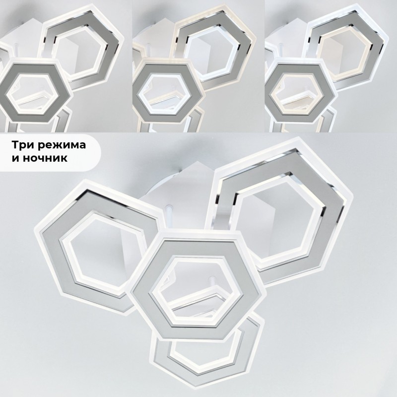 Светильник потолочный SPF-1734 БЕЛЫЙ + РОМ ` D500/H120/4/LED/100W 2.4G DOUBLE 24-07 (1)