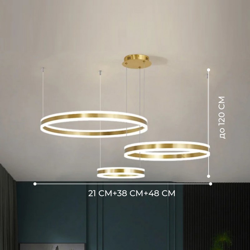 Светильник потолочный SPF-9450 ЗОЛОТО ` D480+380+210/H1200/3/LED/2*360W 24-12 2.4G INLAY (1)