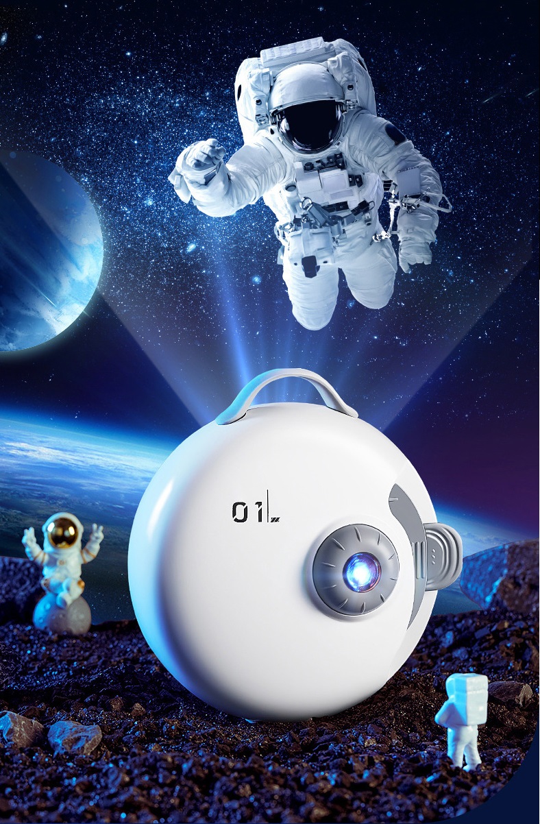 Проектор звездного неба имеет очень компактный размер, может выводить проекцию на вертикальную (стена) или горизонтальную (потолок) плоскость. Чтобы изображение было максимально четким необходимо создать полную темноту в помещении, выбрать ровную поверхность проецирования и настроить фокусировку в зависимости от расстояния от проектора до плоскости проецирования. Чем ближе проектор размещен к плоскости проецирования, тем проекция будет меньше и наоборот, тем самым можно легко регулировать ее размер.